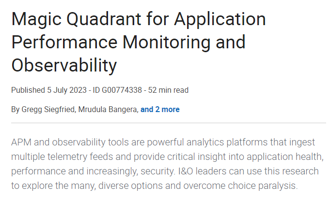 Splunk 很榮幸獲評選為 2023 年 Gartner® Magic Quadrant™ 應用程式效能監控和可觀測性領域的領導者。Gartner® 將「應用程式效能監控 (APM) 和可觀測性」市場定義為:可觀測和分析應用程式健康、表現和使用者體驗的軟體。